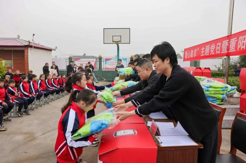 10月28日,應中共大河網支部委員會之邀,河南省教育裝備行業協會校服專委會及副理事長單位河南辰裳服飾有限公司積極深入汝州市焦村鎮水溝村,開展“黨建聚力 暖心助農”主題黨日暨重陽節公益活動,用實實在在的物資與服務,為水溝村村民送上秋冬關懷。
