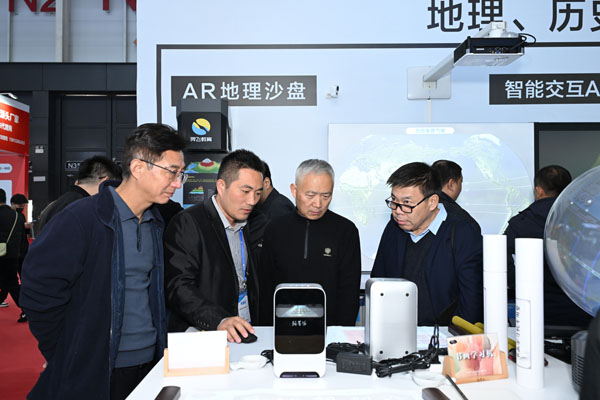 在歷史與地理學科展區,智慧雙屏互動歷史沿革系統與智能交互 AR 立體地形演示系統帶來沉浸式教學新體驗。前者采用雙屏聯動設計,左側呈現歷史文獻、圖片等靜態資源,右側動態演繹事件發展脈絡,教師可通過拖拽、標注實現古今對比教學;后者借助 AR 技術構建三維地形模型,學生輕觸手勢即可查看山脈、河流等地形特征,直觀理解等高線等抽象概念,徹底打破平面教學局限。現場參展的中學地理教研員表示:“以前講地形演變要靠掛圖和想象,現在 AR 模型讓知識點‘活’了起來,學生理解效率至少提升一倍。”