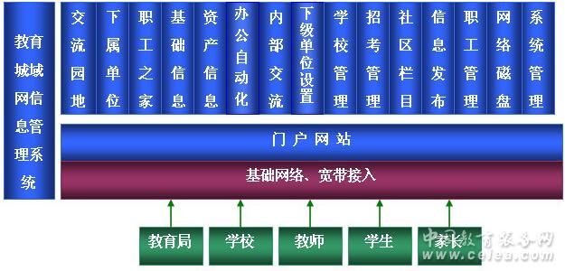該系統的建立目標是提供給各級教育主管部門使用,包括鎮教辦、區縣教育局、地市教育局、省教育廳和教育信息中心、電教站、教育管理中心等。該系統是集教育主管單位的門戶網站、辦公自動化系統和內部信息管理與一體的現代化管理系統,擁有包括內部交流、財產管理、公文流轉、信息發布、網絡磁盤、職工管理、基礎教育數據匯總和統計、報表生成、招考管理等在內的功能模塊,可幫助各級教育主管部門提高管理的數字化水平,增強職工的相互溝通與聯系等。同時,該系統可同步接收東方中原校園信息管理系統提交的基礎數據,形成某個地區分布式的基礎教育管理解決方案。