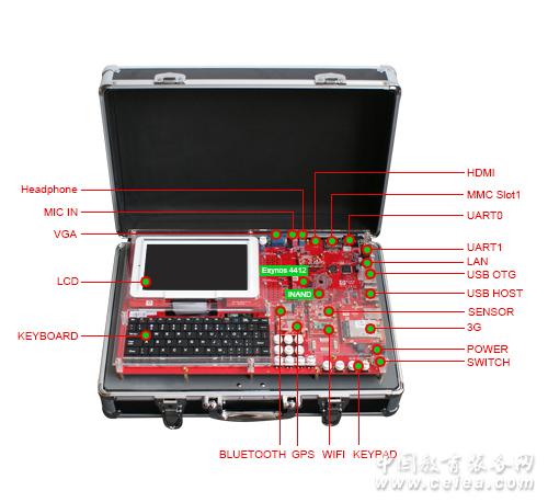 產(chǎn)品詳細(xì)介紹 CPU:ARM Cortex-A8 主頻達(dá)1GHz RAM:1GB三星K4T1G084QQ DDR2存儲芯片 FLASH:1GB 三星K9K8G08U0A NAND FLASH芯片 以太網(wǎng):10M/100M以太網(wǎng)接口, 采用DM9000AEP網(wǎng)卡芯片 音頻:I2S總線, 輸入/輸出, 8歐姆/2W功放, 選用高音質(zhì)WM8580A音頻芯片 PMU:采用美信MAX8698C電源管理芯片 系統(tǒng)總線:系統(tǒng)總線擴(kuò)展接口, 16位數(shù)據(jù)和地址線 最小系統(tǒng)封裝:S5PV210芯片584引腳FBGA封裝, 核心插座采用高可靠性Molex, 引腳間距0.65mm 人機(jī)交互:觸摸屏操作方式 全鍵盤接口 USB 鼠標(biāo)/鍵盤接口 無線藍(lán)牙鼠標(biāo)/鍵盤 2*8矩陣按鍵 8個可控GPIO LED燈 19個平臺功能按鍵 板載接口:高速I2C接口 4個RS232 UART串行口 4-Timer with PWM 4個USB HOST接口, 可外擴(kuò)功能模塊 觸摸屏液晶接口 HDMI1.3高清數(shù)字視頻輸出接口 Audio數(shù)字音頻輸出接口 1路TV IN/OUT視頻輸入/輸出接口 VGA接口 LAN以太網(wǎng)接口 4路SD/MMC存儲接口 3G通訊模塊接口 SIM卡接口 1路MIC IN接口 1路headphone 接口 1路JTAG仿真調(diào)試接口 1路LVDS接口 板載2個8歐2W揚(yáng)聲器 1路CMOS Camera攝像頭接口 2個I2C總線接口(核心主板) 2個SPI總線接口(核心主板) 10通道12位ADC輸入接口(核心主板) LCD顯示接口:四線電阻式7寸高亮真彩觸摸屏, 像素800*480, LED背光, 16:9寬屏, 16:7M真彩色, 預(yù)留LVDS電容屏接口, 400Kbit/s高速I2C接口 視頻輸入/輸出:板載HDMI、VGA、TFT LCD、TV-OUT、LVDS多種顯示接口.支持CMOS攝像頭輸入、 CCD攝像頭輸入;VGA顯示采用GM7123--330MHz的3通道10位高速視頻 DAC芯片; LVDS顯示采用SN75LVDS83A—LVDS接口芯片, 4組差分 信號輸出 無線通訊模塊:WiFi通訊模塊:采用Marvell 88W8686芯片組, 支持IEEE 802.11B/G協(xié)議, SDIO接口 BT藍(lán)牙模塊:支持高速USB接口藍(lán)牙模塊, 高速藍(lán)牙數(shù)據(jù)通信. 3G通訊模塊:中興AD3812芯片組, PCI Express Mini Care接口, 支持WCDMA(UMTS)網(wǎng)絡(luò)、 GSM/GPRS/EDGE上網(wǎng)卡, 支持WCDMA 850MHz、1900MHz、2100MHz三頻, 支持GSM/ GPRS/EDGE 850MHz、900MHz、1800MHz和1900MHz四頻, 實現(xiàn)3G無線數(shù)據(jù)通訊、收發(fā) 短信等功能 GPS定位模塊:采用SiRF公司GP3SF1513F1-S高性能芯片組, 頻率L1 1575.42MHz,C/A Code, 支持20個衛(wèi)星通道, 兼容SBAS(WAAS,EGNOS,MSAS) 攝像頭模塊:Samsung S5K4BAFB 1/4”UXGA CMOS芯片組 輸出8-BIT ITU-R.656/601(4:2:2), 最大幀率15fps@UXGA 實時時鐘:內(nèi)部實時時鐘(帶后備鋰電池) 外接電源:AC220DC 12V/3A電源適配器