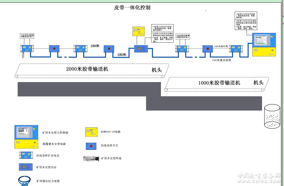 產品詳細介紹1、KTC158煤礦用工作面通信控制系統(tǒng)/皮帶控制系統(tǒng)概述 KTC158礦用工作面通信控制系統(tǒng)整體采用工業(yè)PLC和嵌入式技術,人機界面采用12.1寸TFT顯示終端,上位機采用防爆計算機,可實現(xiàn)井下掘進順槽皮帶、采煤工作面順槽皮帶、主運輸皮帶以及洗煤廠皮帶等的保護,控制、 沿線通話、故障檢測、顯示及報警等功能,帶有標準的以太網接口、RS485、RS232接口。從小皮帶到主運皮帶;從單條運輸膠帶到整個礦井的所有固定膠帶機運輸系統(tǒng);從簡單的頭尾搭接到“丁” 字型、“山” 字型搭接 ;從設備啟?刂频焦ぷ麟娏 、電壓顯示、皮帶速度檢測和顯示、煤倉煤位檢測和顯示、高低煤位停機;電機溫度、運行頻率、風機狀態(tài)等的檢測和顯示及計算機遠程傳輸通信;故障自診斷等均可提供全套解決方案。 礦用工作面控制系統(tǒng) 2、KTC158煤礦用工作面通信控制系統(tǒng)/皮帶控制系統(tǒng)功能 (1)控制及報警功能 ●計算機集中控制 操作人員在井上可直接通過鼠標對井下設備進行啟停操作,并可根據實際需要實現(xiàn)設備的單啟、單停;聯(lián)啟、聯(lián)停;單啟、聯(lián)停;聯(lián)啟、單停等操作, ●人工就地控制 在就地方式下,操作人員分別對采煤工作面破碎機、轉載機、前部運輸機、后部運輸機、乳化泵站、清水泵站以及各條膠帶的起、?刂啤 ●檢修方式控制 井下設備檢修階段,可打破各設備連鎖關系,隨時、任意啟停任設備。 ●點動方式控制 各被控設備在檢修、調試過程中經常要點動電機,此工作方式可實現(xiàn)單個電機的點動。 ●具有同煤流方向互相閉鎖功能,實現(xiàn)順煤流停,逆煤流開。 ●通過按下沿線的急停按鈕可實現(xiàn)緊急停機,并顯示急停位置。 ●啟、停前的語音報警:對起、停過程和各保護信號均有語音報警。 ●帶有磁力起動器負載電流檢測和顯示功能,當電機過載后實現(xiàn)語音報警。 ●各種控制方式間有可靠閉鎖。 (2)顯示功能 ●12.1吋彩色液晶屏以圖形、動畫及漢字顯示 ●被控設備開機率統(tǒng)計及顯示 ●被控設備運行狀態(tài)圖形、動畫顯示 ●被控設備運行狀態(tài)漢字提示 ●沿線閉鎖位置顯示 ●沿線電纜斷路檢測及斷路位置顯示 ●在計算機屏幕上動態(tài)顯示全系統(tǒng)工況、主要保護、參數(shù)及每條皮帶運行的有關信息。 (3)礦用工作面控制系統(tǒng)的保護功能 ●系統(tǒng)帶有速度的連續(xù)量檢測。通過對系統(tǒng)自帶的速度傳感器信號的檢測,可以進行打滑、過速、欠速和斷帶保護。在參數(shù)菜單設定好每一個連續(xù)量的報警值和停機值后,一旦達到報警值,將自動報警,超過停機值,將自動停機(當然也可以設定為只報警,不停機)。 ●系統(tǒng)配有堆煤、跑偏、煙霧、環(huán)境溫度等開關量傳感器?蓪Χ衙、跑偏、煙霧、環(huán)境溫度等進行檢測和保護。并實現(xiàn)報警停機(當然也可以設定為只報警,不停機)。 (4)語音通訊功能 通過該系統(tǒng)工作人員相互之間可以通話,便于設備檢修、聯(lián)絡,同時可與地面通過調度電話實現(xiàn)與皮帶沿線的半雙工通訊。 (5)擴展功能 控制器留有備用容量和接口,可以很方便地進行擴展。 (6)系統(tǒng)所有檢測輸入信號 開關量、模擬量(1~5V;4~20mA;200~1000Hz)由參數(shù)設定選擇。 (7)靈活的參數(shù)設置和密碼保護功能 ●KTC158型控制箱就地帶有所有檢測及控制的參數(shù)調整功能。 ●可直接通過參數(shù)調整設置密碼保護功能 3、KTC158煤礦用工作面通信控制系統(tǒng)/皮帶控制系統(tǒng)的特點 ● 國內同類產品中第一款采用西門子本安型PLC用于邏輯控制,大大提高系統(tǒng)的可靠性行。 ● 人機見面采用嵌入式計算機加12.1寸TFT液晶顯示屏。 ● 采用現(xiàn)場CAN總線進行數(shù)據傳輸,有效提高通訊距離和傳輸?shù)目煽啃浴?br/> ● 由于采用了本安型PLC,可輕松實現(xiàn)各種開關量和模擬量信號采集,減少各種V/F、I/F、等轉換電路。 ● 下位機帶有8寸的液晶顯示屏和本安型PLC,杜絕各設備的盲開。 |