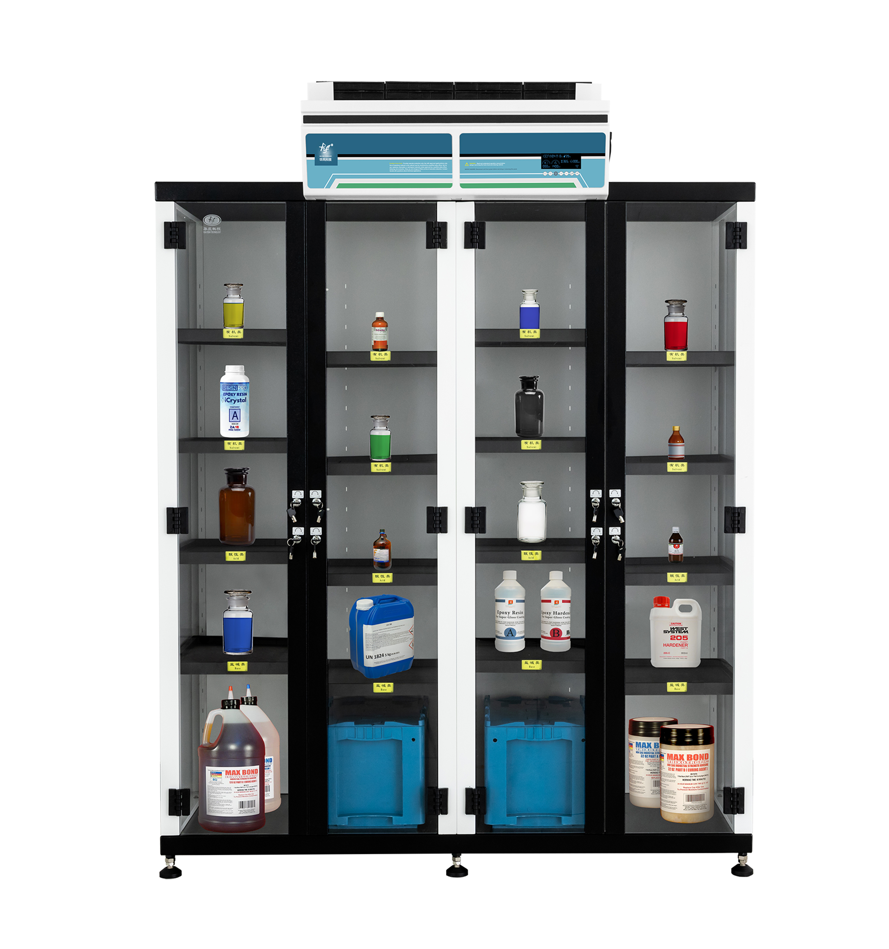 產品詳細介紹基本參數 尺寸(mm):內:996*470*1752 外:1000*525*1960-2362 空氣處理量:240m3/h 柜內體積:0.76m3 儲存容量:200瓶(每瓶500ml) 盛水盤:18L 層板承重:50kg 空氣交換率:315times/hour 總功率:30watt 電流:1.2A 音量:≤50dba 電壓/頻率:220V/50Hz 材質: 柜體:1.2mm鍍鋅鋼板,涂有抗酸堿的環氧樹脂涂層,承重部件采用3.0mm加厚鍍鋅鋼 門體:鋁合金嵌5mm高品質透明亞克力,內設暗藏式永磁磁體 鹽酸盒:PP材質儲存強酸(400*300*285mm) 鹽酸盒存放容量:12瓶/500ml瓶 磁性標貼:化學品種類標識 前門板:雙門,尺寸500寬*1735mm高,鋁合金四面鑲嵌高品質亞克力門板(總厚度20mm) 門把手:4種樣式可選(黑色,白色,立式,大拉手) 可調層板:承重50kg,均勻通風孔可調層板8塊 *LED顯示屏:超大LED智能顯示屏,顯示柜內溫度,風機轉速,過濾器壽命倒計時,過濾器出風口和室內空氣TVOC濃度(可選) *室內空氣VOC監測器:24小時實時在線監測室內空氣TVOC濃度并顯示PPM值。(可選) *過濾器飽和監測報警器:24小時實時在線監測過濾器出風口TVOC濃度并顯示PPM值(可選) *風機轉速調節:可手動調節風機轉速,保證最佳風速 盛水盤:18L容量,附帶吸附墊 風機:24伏電流,美國進口風機,性能穩定,超靜音,無刷電機 接口:抗電磁干擾電源線。 過濾模塊:聚丙烯(PP材質) 過濾器型號可選: YJ型過濾器,主要針對有機氣體 TY型過濾器,對酸性氣體和有機氣體吸附能力強 HEPA過濾器,H14,針對粒子過濾器,對大于0.3μm的粒子,過濾效率達99.995%。 |