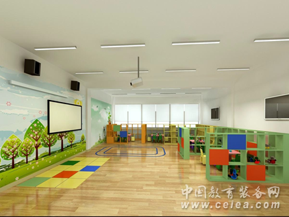 主要配置:教育活動專區配備兒童課桌椅、多媒體教學設備及相關教具,幼兒游戲活動區主要包括角色游戲產品系列、編織材料、紙工布藝、積木玩教具、數學益智早教玩具、經典繪本及互動點讀繪本等。