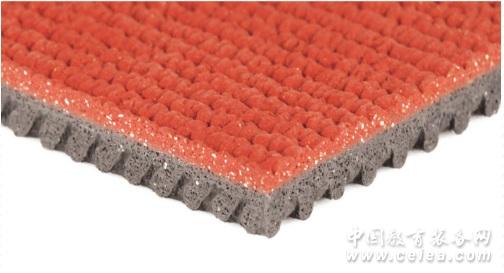 同欣預制型橡膠跑道系列——康寶 產品介紹 同欣品牌預制型橡膠跑道系列是一種雙層一體結構的環保型橡膠卷材,上層為高韌性耐磨面層,面層深度為1-2mm的無規則花紋是由特制的專業設備連續壓延而成,保證為運動員提供足夠的足底摩擦力。 下層為高彈性底層,底層為具有合理傾斜角度的水滴狀蜂巢結構的微孔發泡層。這種幾何結構能夠很好地配合微孔發泡的精密配方,能提供卓越的沖擊吸收能力、平滑的能量過渡以及連續的能量反饋。彈性底層進行惰性氣體閉孔發泡后,形成的眾多微小的惰性氣體氣囊,保證了底層的高回彈性能。