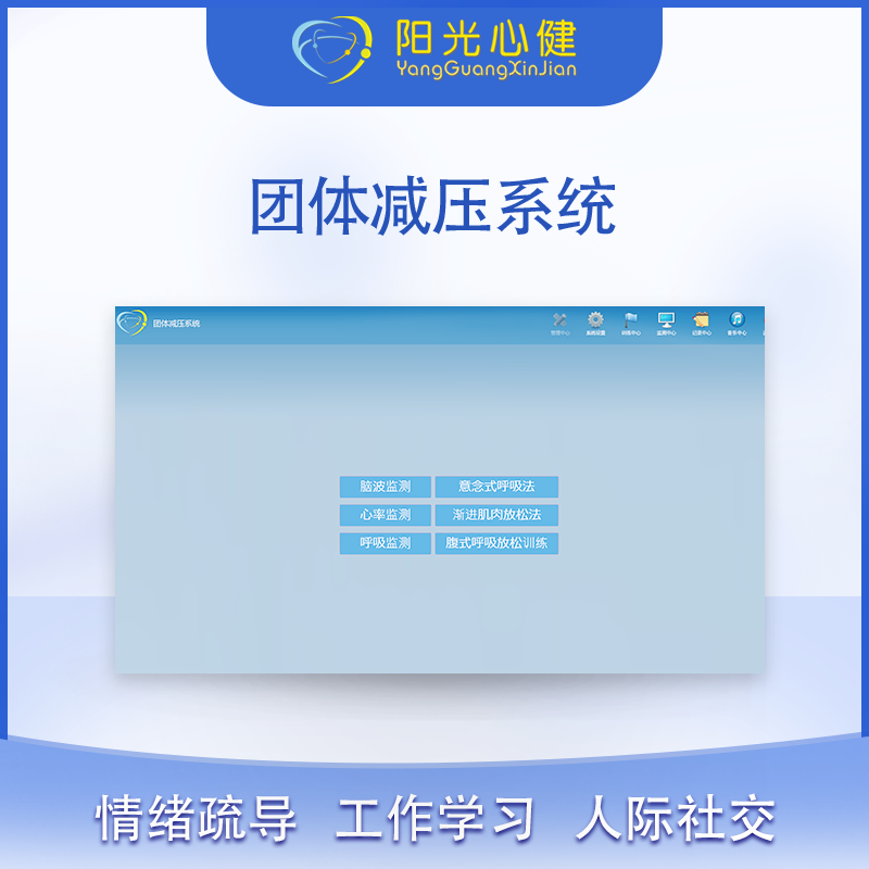 產品詳細介紹一、配置硬件介紹: 1、系統搭載硬件需求:27寸控制端,10寸電容全觸屏。 2、無線腕式紅外心率采集器 3、無線觸壓式呼吸采集器 4、腦波生理傳感器 二、功能介紹: 該減壓系統由一個主控端和多個訓練端組成。 每位訓練者在訓練端都能達到個性化、有效的音樂放松訓練。 整套系統必須具備團體訓練的“一對多”訓練模式。 1、多通道訓練 2、系統組成:包括管理中心、系統設置、訓練中心、記錄中心、音樂中心。五大中心相輔相成。 3、系統提供了多種音樂放松訓練:放松訓練是指使有機體從緊張狀態松弛下來的一種練習過程。 |