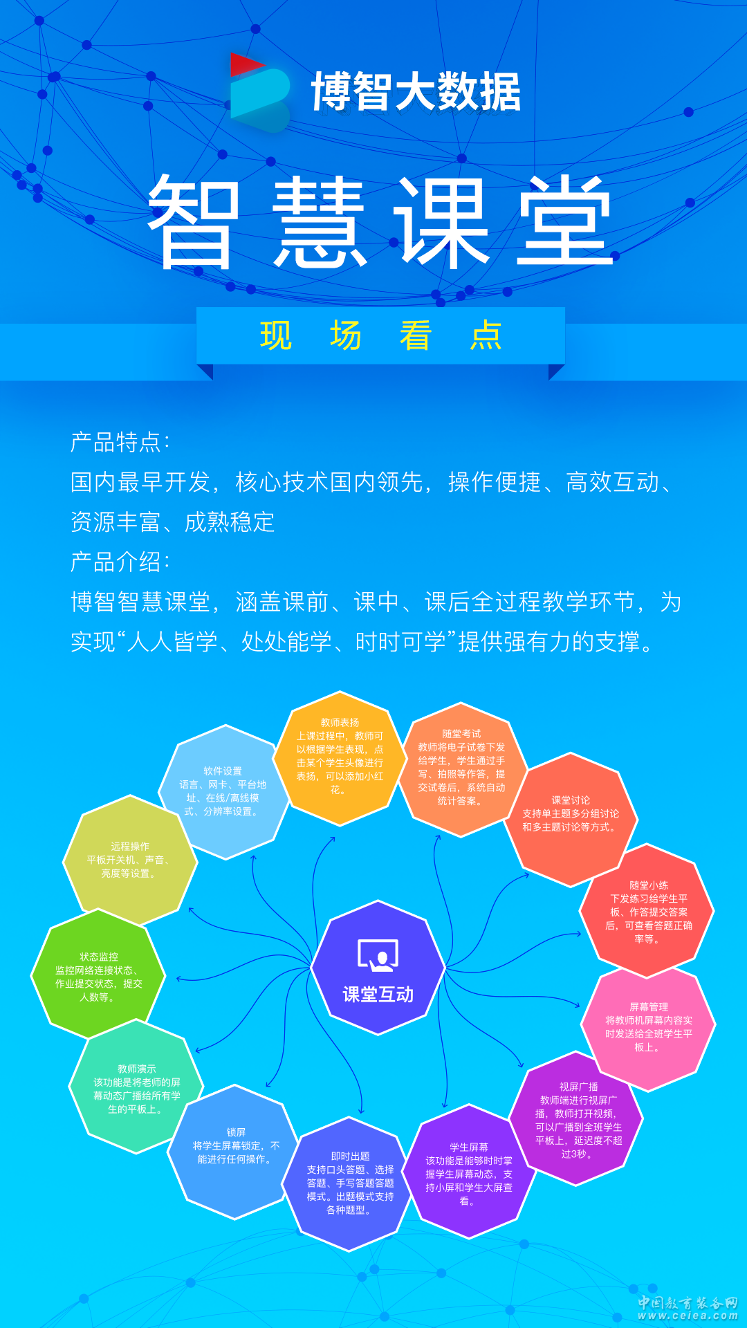 產品詳細介紹博智智慧課堂,涵蓋課前、課中、課后全過程教學環節,為實現“人人皆學、處處能學、時時可學”提供強有力的支撐。