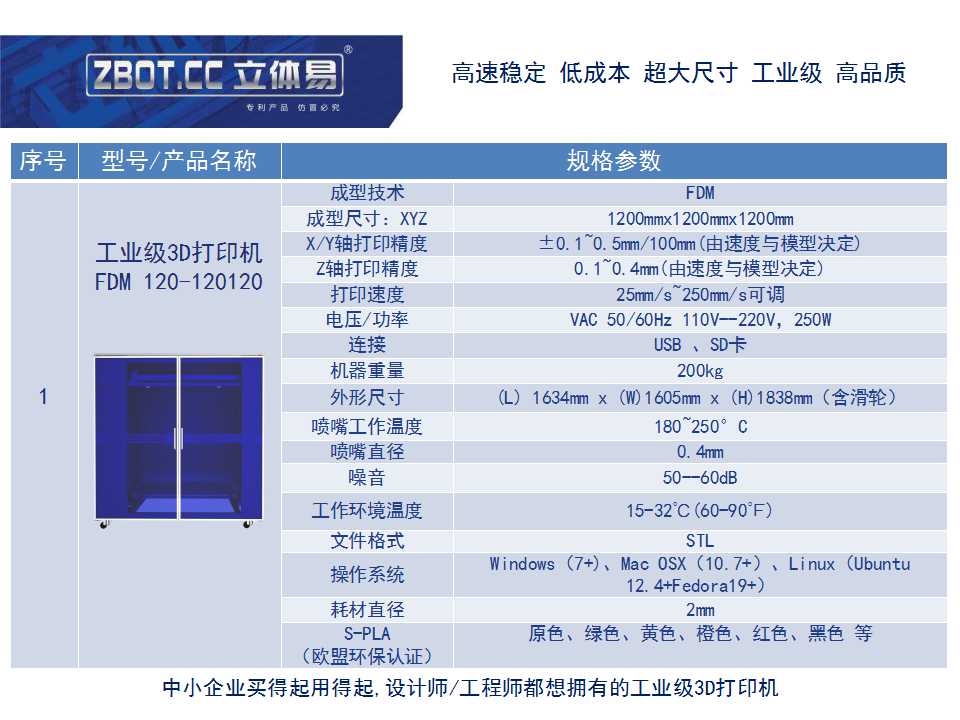 立體易FDM-120-120120大尺寸工業級3D打印機