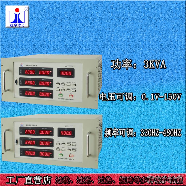 產(chǎn)品詳細(xì)介紹400Hz中頻靜變電源是采用高頻電力電子開(kāi)關(guān)變換技術(shù),是專門為航空及軍用電子電氣設(shè)備設(shè)計(jì)制造的電源,可用于飛機(jī)及機(jī)載設(shè)備、雷達(dá)、導(dǎo)航等軍用電子設(shè)備,以及其它需要400Hz中頻電源的場(chǎng)合,是機(jī)組式變頻電源的換代產(chǎn)品。 智能程控中頻電源JL400-13003技術(shù)規(guī)格書(shū): 型號(hào) JL400-13003 容量 3KVA 輸入制式 單相兩線+PE 輸入電壓 220V±10%, 輸入頻率 50Hz/60Hz±5Hz 交 流 輸 出 相數(shù) 三相四線+地線 變壓器隔離輸出 頻率 定頻:400Hz (350.0~450.0Hz可調(diào)) 電壓 固定電壓115V (0.1V-150.0V可調(diào)節(jié)) 電壓調(diào)節(jié)幅值 0.1V/1V/5V 依次增加 電流 8.6A (115V) 波形 標(biāo)準(zhǔn)正弦波 頻率調(diào)節(jié)幅值 0.1Hz/1Hz/5Hz 依次增加 頻率穩(wěn)定度 ≤±0.1% 電壓穩(wěn)定度 ≤±1% 波形失真度 ≤2% (115V 400Hz) 三相不平衡 可接三相不平衡負(fù)載、可做單相使用 瞬態(tài)特性 符合GJB 572A-2006規(guī)定(電壓變化≤10%,恢復(fù)時(shí)間≤20ms) 效率 ≥85% 頻率顯示 四位LED,分辨力0.1Hz 電壓顯示 四位LED,分辨力0.1V 電流顯示 四位LED,分辨力0.1A 功率顯示 四位LED,分辨力0.01kW 功率因數(shù)顯示 三位LED,分辨力0.01 保護(hù) 過(guò)載、過(guò)流、過(guò)熱(85℃±5℃)、短路等保護(hù) 功能 保護(hù)裝置動(dòng)作后發(fā)出報(bào)警信號(hào),顯示故障代碼; 過(guò)載能力 1.0Ie<I輸出≤1.1Ie ,延時(shí)15s 1.1Ie<I輸出≤1.2Ie 延時(shí)5s