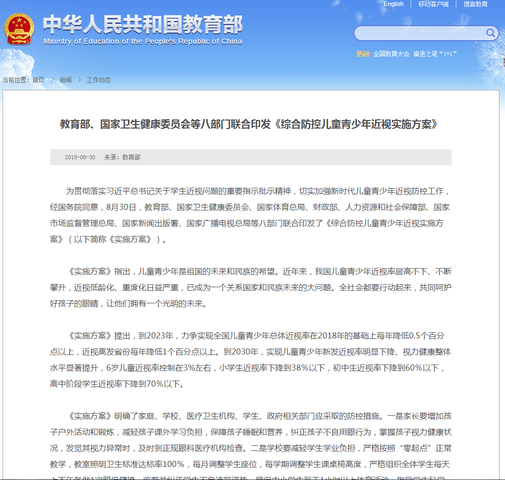 我國兒童青少年近視防控主戰場是學校,必須找到適合在學校進行近視防控的產品、技術和模式方法。