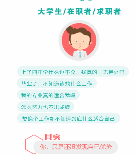 產(chǎn)品詳細(xì)介紹蛙人網(wǎng)《大學(xué)生版測(cè)評(píng)系統(tǒng)》: 它是三套國(guó)際頂尖心理學(xué)理論的完美結(jié)合:馬斯洛需求理論、蓋洛普優(yōu)勢(shì)定律、MBTI人格理論。 它能幫助你發(fā)現(xiàn)你的優(yōu)勢(shì),找到你的職業(yè)定位 它會(huì)對(duì)你的工作,生活和家庭婚姻帶來(lái)積極的影響 幫你發(fā)現(xiàn)自身的優(yōu)勢(shì),更容易找到適合的工作,發(fā)揮優(yōu)勢(shì),最大限度的體現(xiàn)自身價(jià)值,了解自己,理解他人人際關(guān)系更和諧。 有意向者可聯(lián)系:4000600062 |