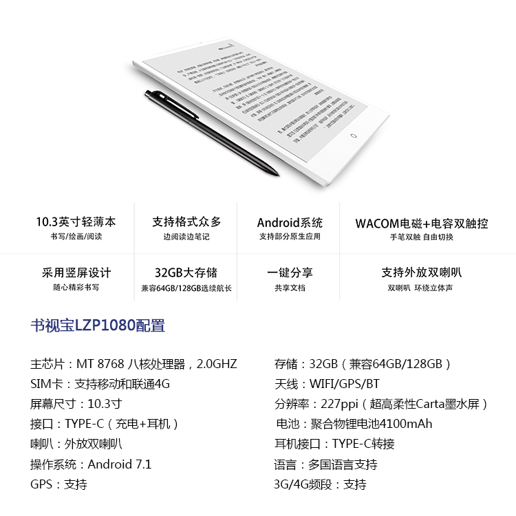 3.整機輕薄,選續航長,6mm機身厚度,如同紙質基本般輕薄,10.3吋大屏,聚焦更多內容,系統穩定。