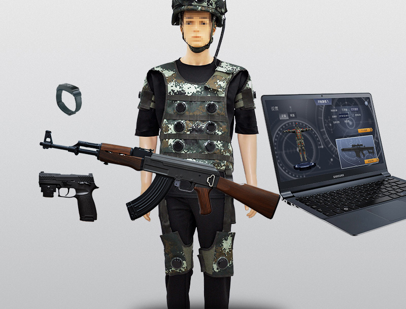 系統特點介紹 1、準確分辨“中彈”部位,多種類“中彈”感應提醒方式 訓練服有多個激光感應節點,可區分受訓者“中彈”部位 電擊刺激、語音提醒、有色煙霧等多種“中彈”感應方式提醒
