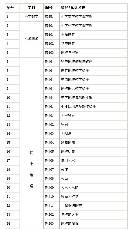 教育部教學儀器設(shè)備目錄 中涉及的所有軟件品種(CDROM)