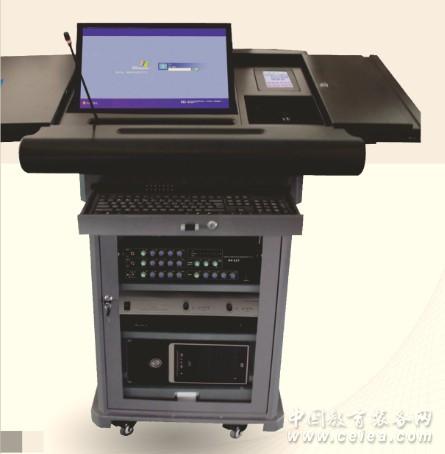 講桌內部配備先進的電動升降裝置,鼠標&鍵盤,話筒,中控&功放,電腦,液晶顯示器,音