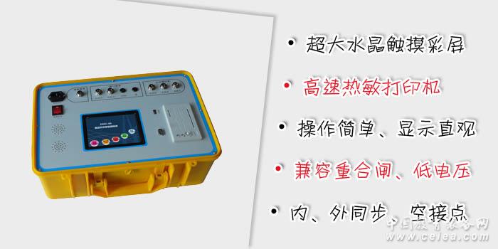 DL/T 846.3-2004 《高電壓測試設備通用技術條件 第3部分:高壓開關綜合測試儀》 ZGKC-6A 高壓開關動特性測試儀 使用手冊.pdf ZGKC-6A 高壓開關動特性測試儀 技術規范書.pdf (注意:右鍵目標另存為下載) 高壓開關機械特性測試儀、開關機械特性測試儀、高壓開關綜合測試儀、斷路器動特性測試儀、斷路器機械特性測試儀、斷路器綜合測試儀、高壓開關時間特性測試儀、高壓開關特性測試儀、開關特性測試儀、斷路器測試儀、開關機械特性測試儀、開關參數測試儀 高壓斷路器是電力系統中最重要的控制設備之一。電網中高壓斷路器的運行數量最多,運行條件和技術要求比較復雜,其運行可靠性不僅關系到高壓斷路器本身,而且影響到其它設備乃至整個電網。因此,對高壓斷路器的動特性進行測試是一項很重要的工作,但采用傳統的方法對高壓斷路器進行動特性測試時存在操作復雜、測試精度低等缺點,為了解決這些問題,我們開發了ZGKC-6A高壓開關動特性測試儀。 超大水晶觸摸彩屏、高速熱敏打印機 5.7寸640×480彩色觸摸屏,人性化交互式水晶界面,圖文顯示,界面直觀,便于現場人員操作和使用; 高速熱敏打印機,方便現場打印試驗數據和曲線; 集成超強性能直流電源 集成操作電源,無須現場二次電源,現場使用更加方便快捷; 電源電壓30V~300V可調,電流20A,連續工作時間3s; 三種試驗完美實現 常規試驗,測出開關的合分閘時間、彈跳時間、同期時間;測出開關的剛合分速度、最大速度、平均速度、開距、超程等速度數據; 重合閘試驗,測出開關重合閘的分合、合分、分合分的時間數據; 低電壓試驗,測出合分線圈的電壓動作值,電源電壓可連續調節; 三種合分閘控制方式 支持內同步方式控制,內部電源輸出直流電壓給合、分閘線圈; 支持外同步方式控制,外部電源提供電壓給合、分閘線圈; 支持空節點同步方式控制,開關自身電源提供電壓給合、分閘線圈,內部提供兩路無源空接點; 具有錄波功能 可對應時間坐標顯示斷口狀態—時間曲線、行程—時間(S-t)曲線、線圈電流—時間(I-t)曲線,有利于對開關機構故障的準確判斷。 大容量存儲器,支持U盤內置或外置 帶4G容量的U盤,可海量存儲現場數據,U盤可選內置方式或外置方式;儀器具有1個標準USB接口,易導出試驗數據;U盤外置方式下用于插U盤,U盤內置方式下,直接連接PC機; 同測6路斷口1路速度1路電流 可測試6斷口數據,內部抗干擾電路可以抵御現場感應的10kV高壓; 可測試1路速度,配備直線傳感器、角速度等傳感器,幾乎涵蓋所有型號開關的測試; 在內同步方式時,可測試1路通過合、分閘線圈的電流; 配備PC機上層軟件 PC機上層軟件可以打開試驗數據,即可以管理分析試驗數據,也可以生成試驗報告、導出EXCEL數據等功能; 內置抗干擾電路 內部抗干擾電路可以滿足500kV變電站內可靠使用,保護電路能保證儀器及人員安全、儀器并能穩定、準確測試; 防塵防水工程塑料密封箱 采用防塵、防水、防腐工程塑料密封箱,體積小,重量輕,便于攜帶。高壓開關動特性測試儀