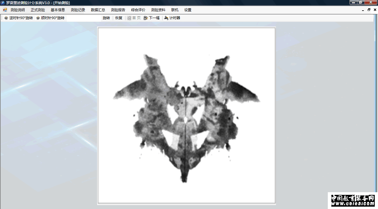 產品詳細介紹 測試工具——測試者 -閱讀測驗指導語 -10張圖版依次呈現 -任意角度旋轉圖版