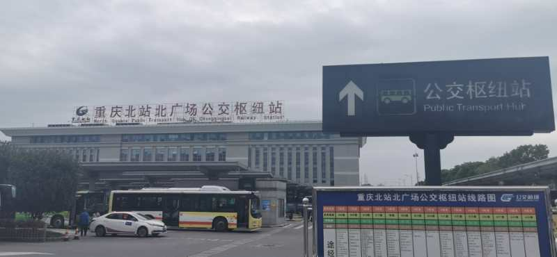 志愿者在重慶北站到達(dá)出口舉牌接站,接到來(lái)賓后,步行約2分鐘前往站內(nèi)右側(cè)公交站場(chǎng),抵達(dá)交通車乘車點(diǎn)。